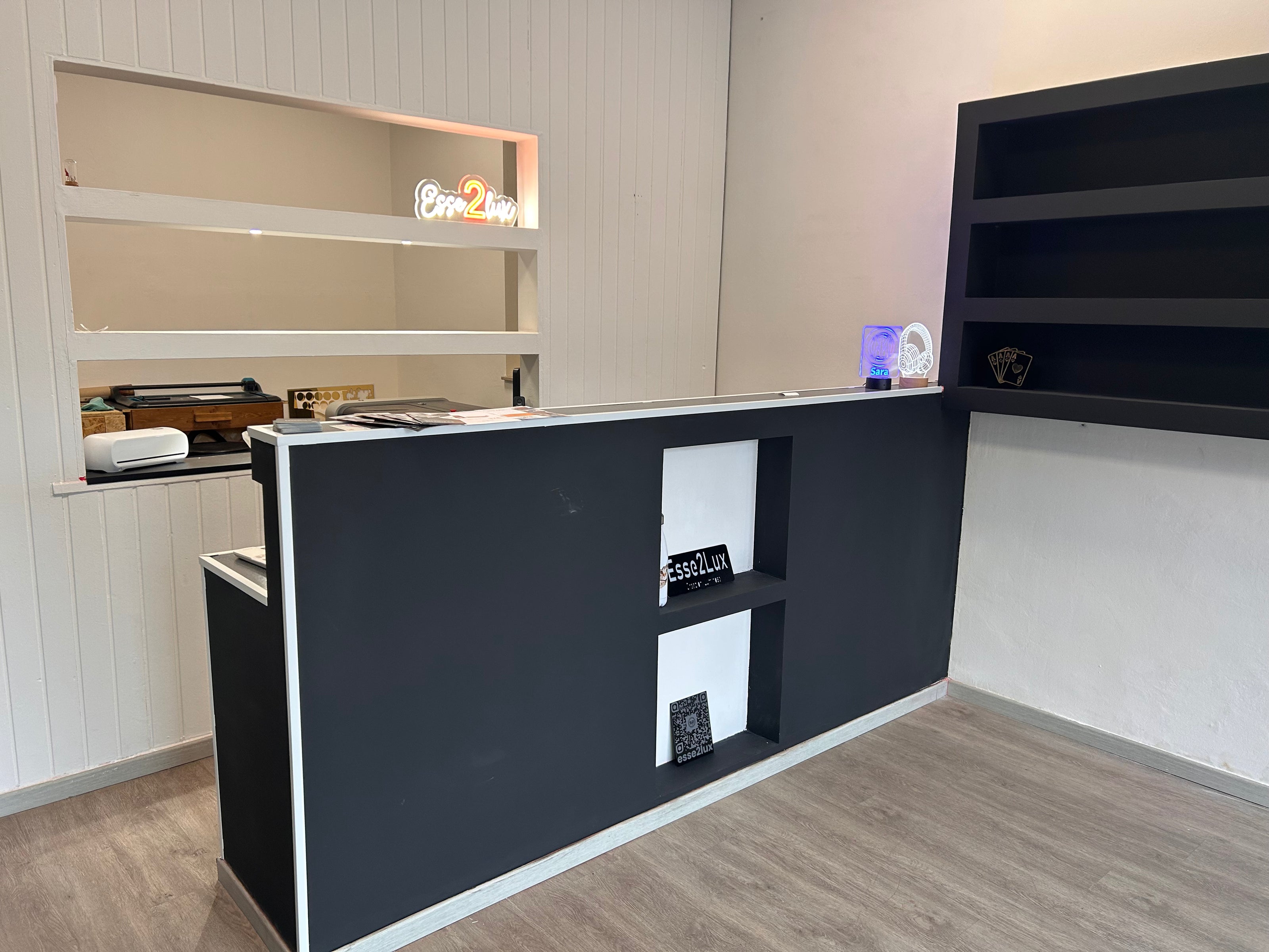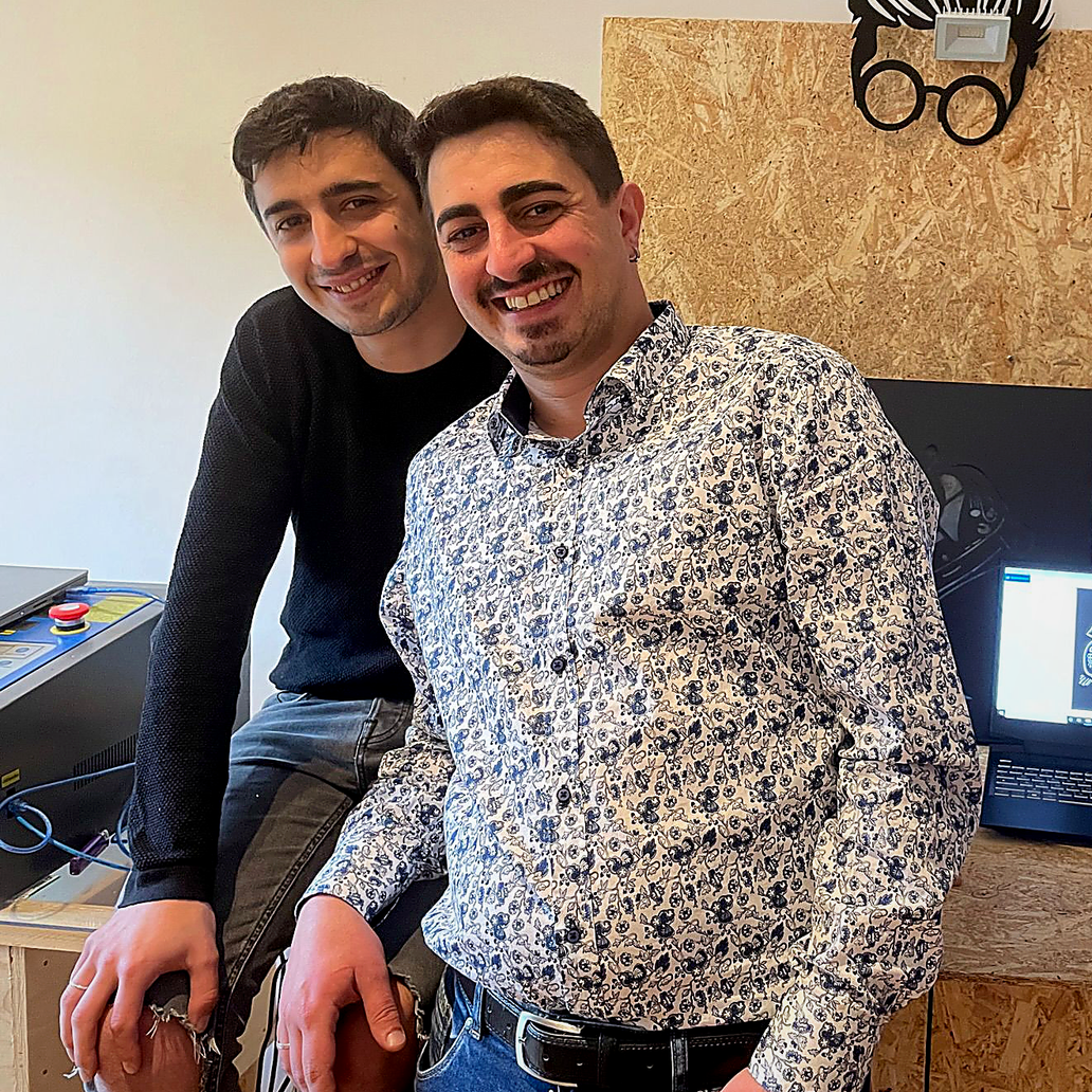 Siamo Davide e Fabio, e gestiamo ESSE2LUX a Bonate Sotto (BG).Produciamo tutto in laboratorio: ci scrivi, ci mandi il file, lo controlliamo e lo realizziamo.